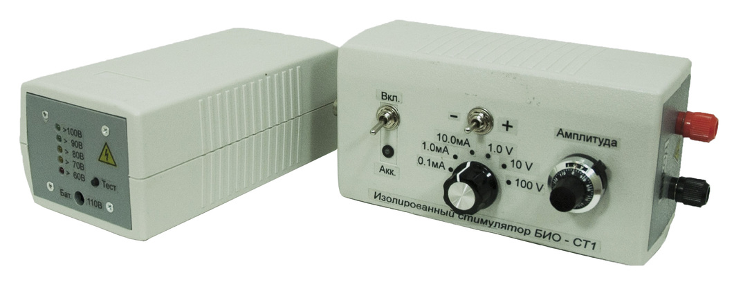 Изолированный стимулятор Bio‑stim2 для электрофизиологических экспериментов. Оптическая изоляция, выбор режима (ток/напряжение). Выходное напряжение: 1–100 В, ток: 0–10 мА. Литий‑ионный аккумулятор, вольтметр, 6‑позиционный переключатель диапазонов. Удобство и безопасность эксплуатации.